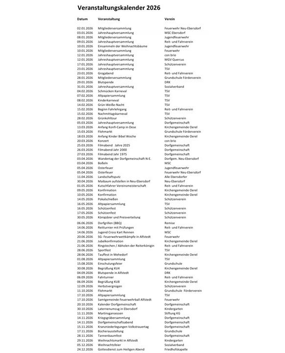 Veranstaltungskalender 2026